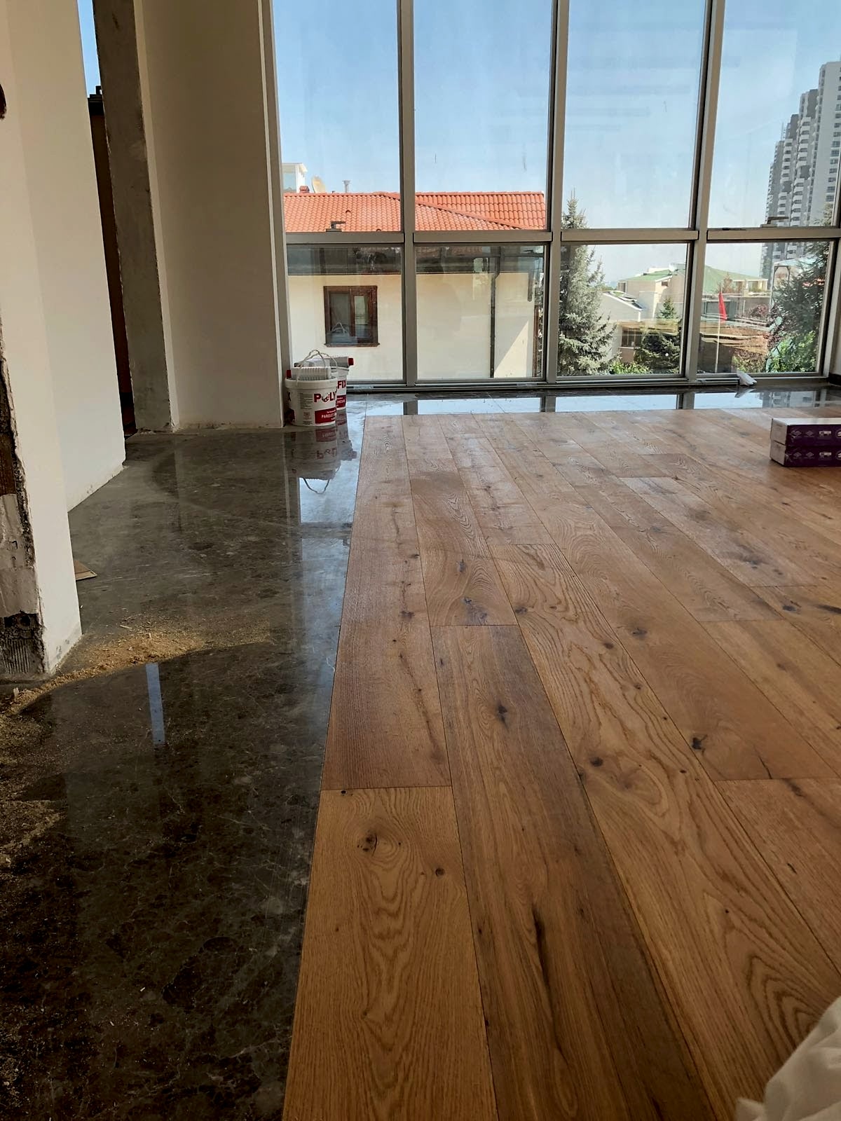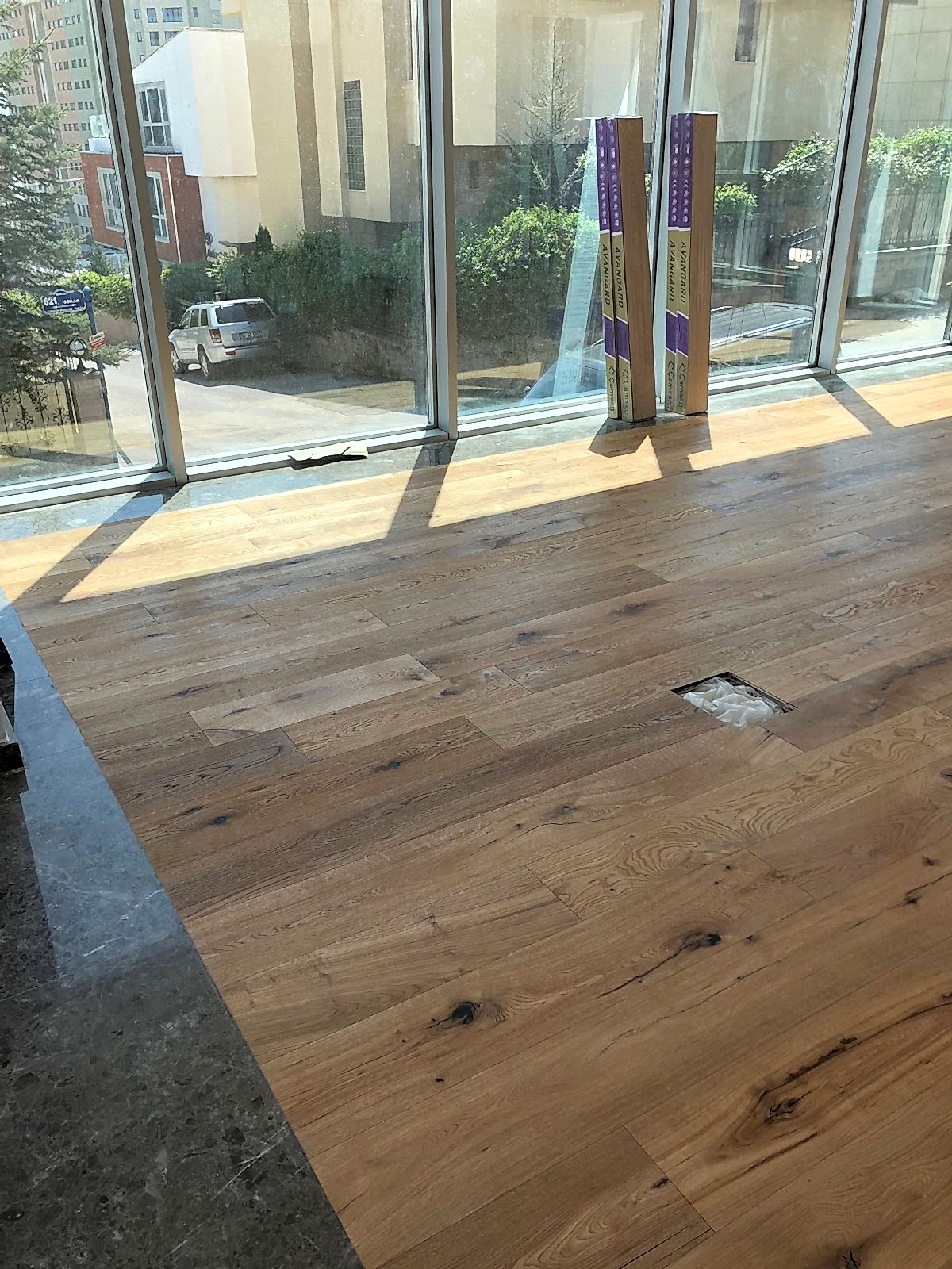 Meşe Yağlı Fırçalı Derzli Masif Parke Uygulamamız • Via Flat İş Merkezi Söğütözü